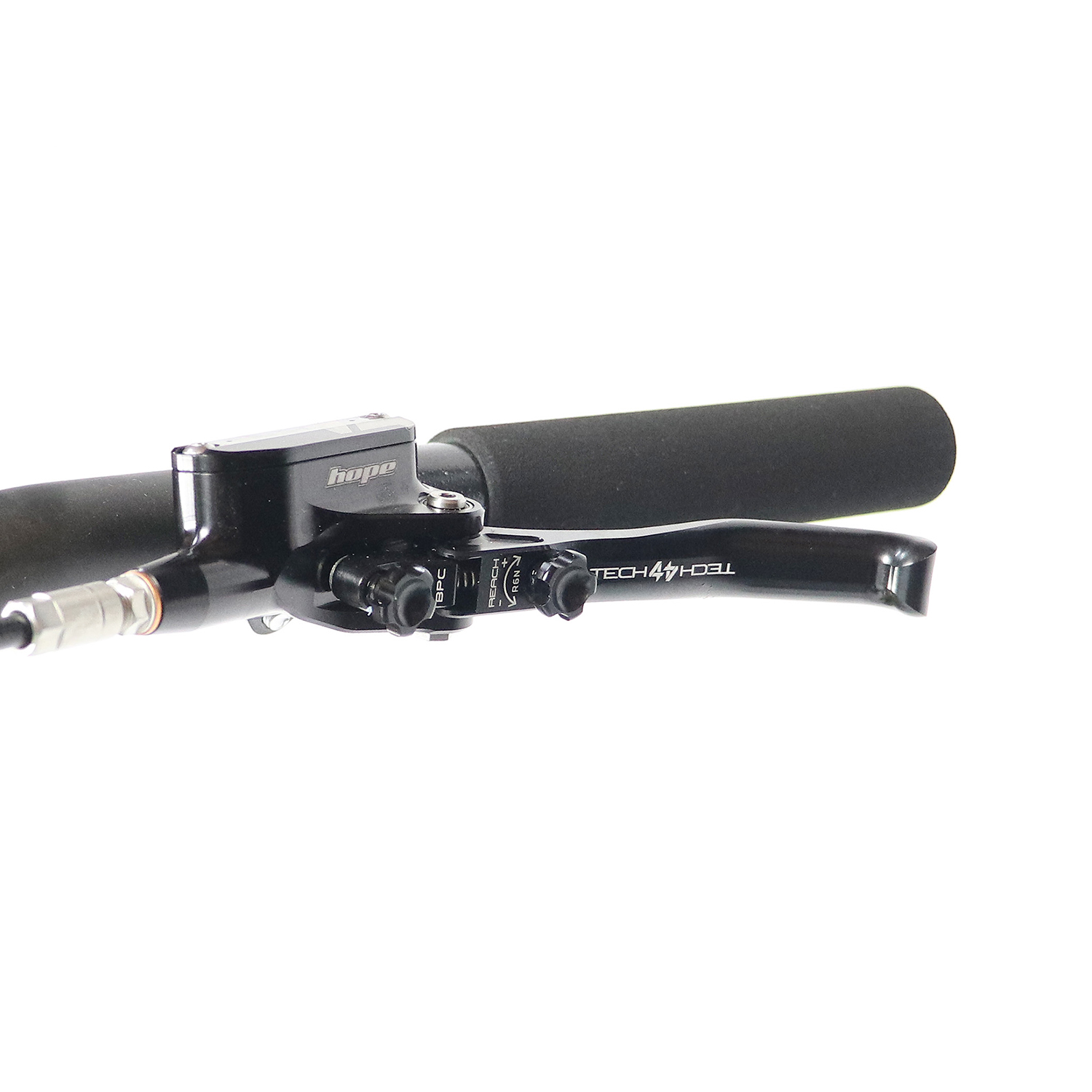 - Bomba de freno Tech 4 con ajuste exterior de alcance de la maneta al manillar y presión del pistón.