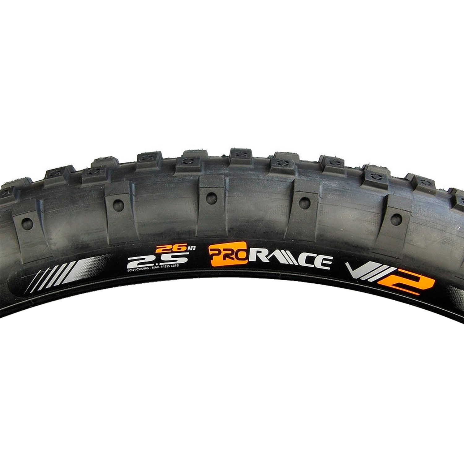 - Neumático trasero de 26”x2.50 ProRace V2 con nuevos gráficos ProRace V2 en naranja, gris y blanco.